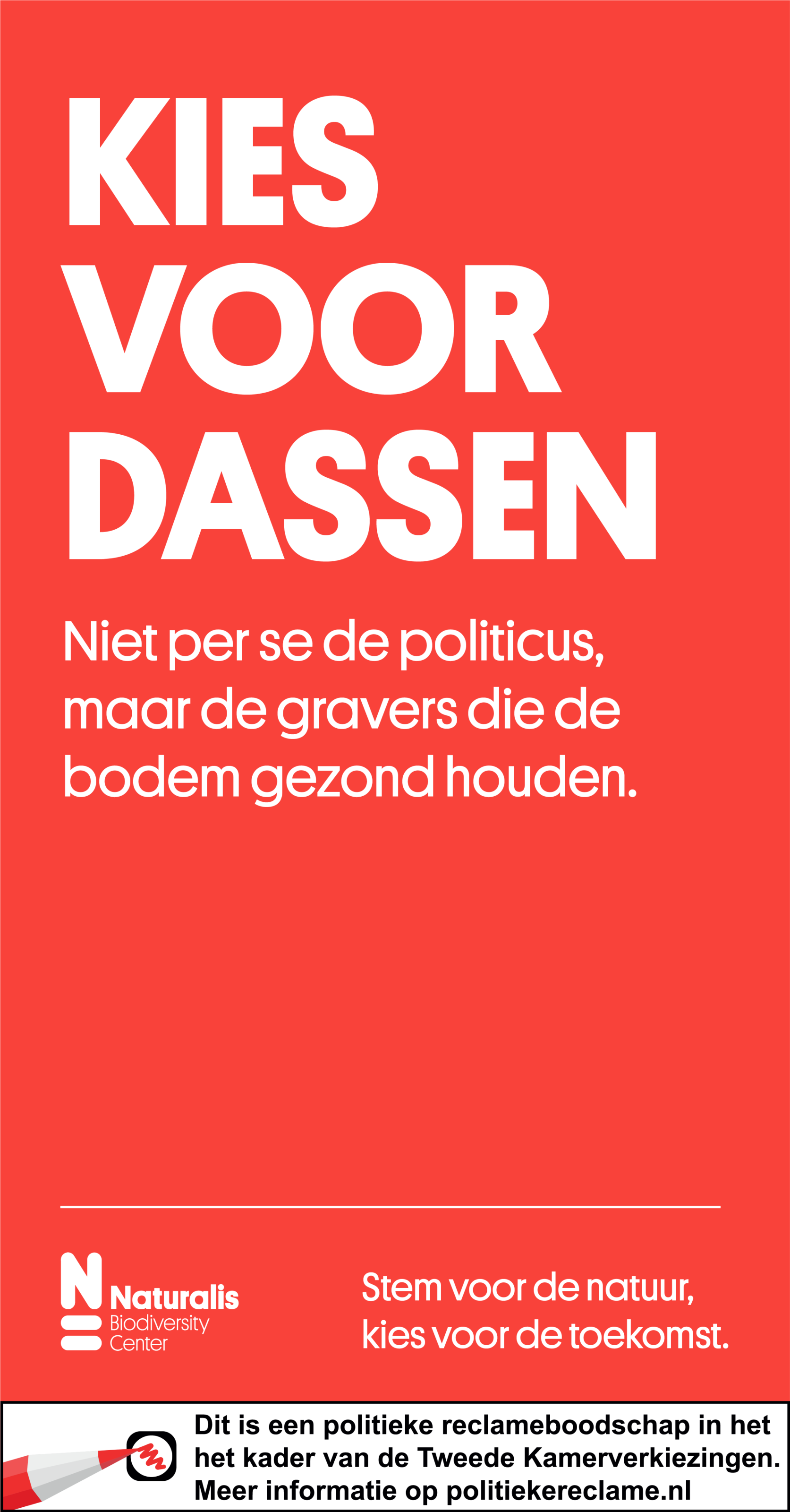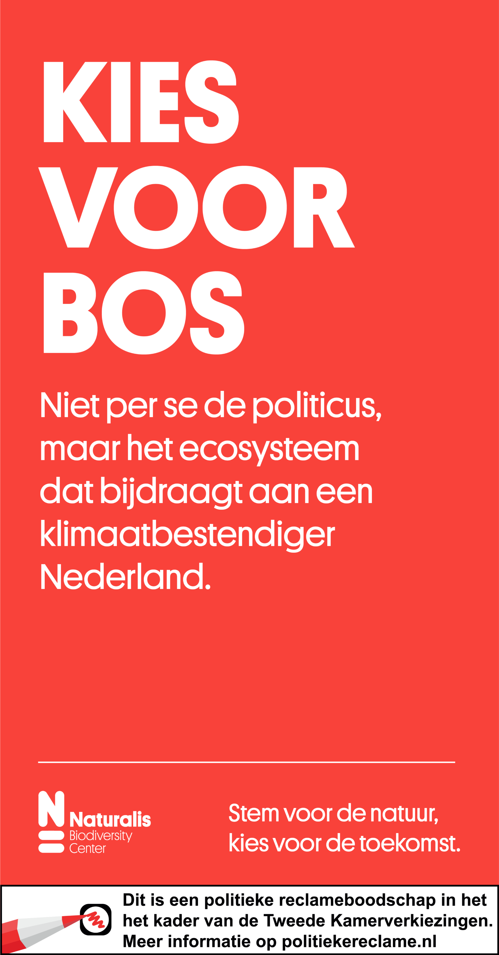 De campagne gebruikt de achternamen van politieke kandidaten die verwijzen naar dieren, planten of ecosystemen. Niet om een specifieke partij te steunen, maar om met een originele insteek te laten zien wat er écht op het spel staat. De campagne is de komende dagen breed zichtbaar en hoorbaar via sociale media, YouTube, Spotify en radio, en verschijnt daarnaast in diverse (landelijke) dagbladen, waaronder het Financieele Dagblad op 29 oktober.