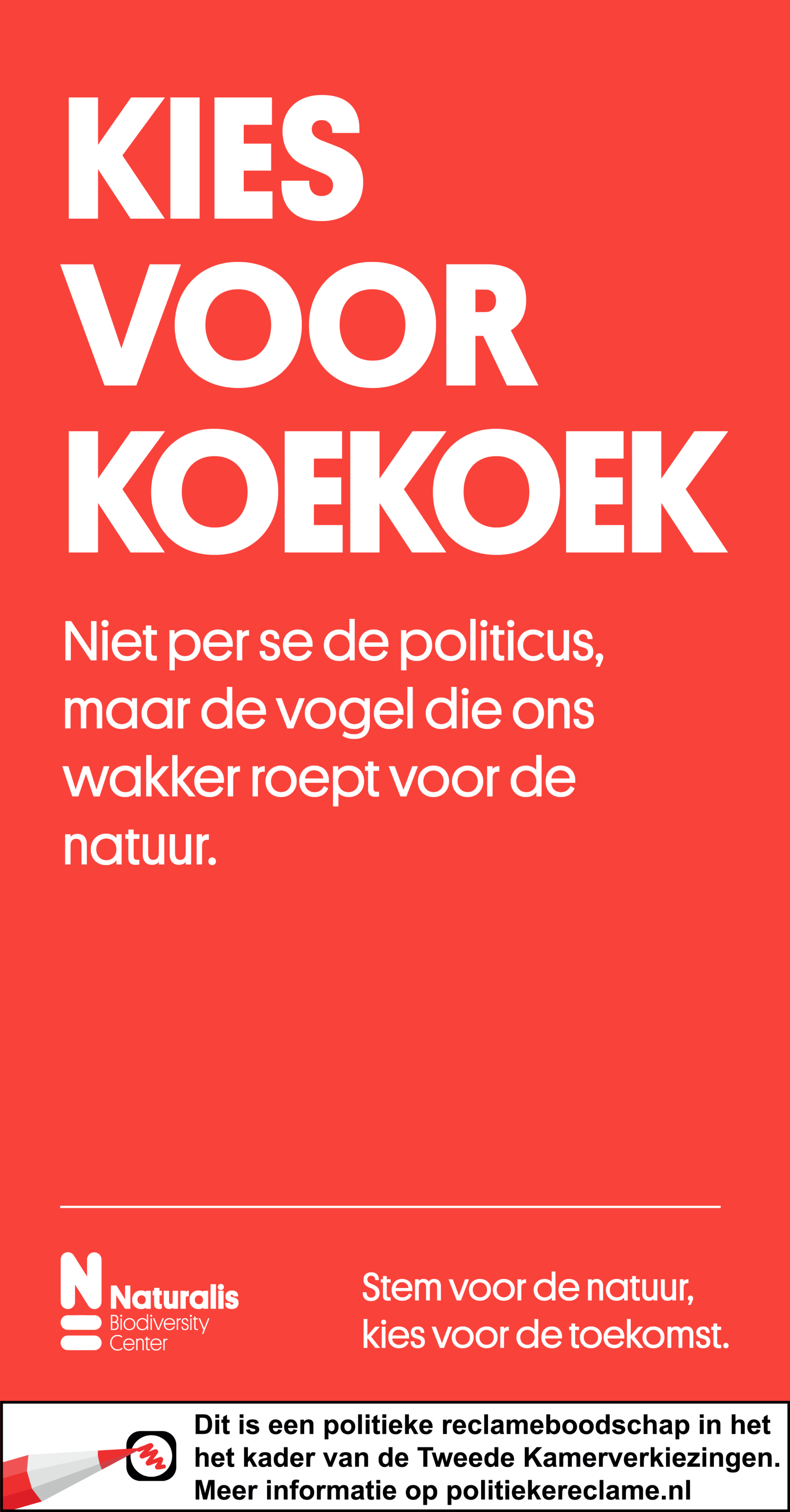 Marcel Beukeboom, algemeen directeur Naturalis: “Onze biodiversiteit holt razendsnel achteruit. In het huidige politieke klimaat gaat veel aandacht uit naar de veiligheid van ons land, maar het gaat nog te weinig over biodiversiteit, terwijl dat een minstens zo urgent veiligheidsvraagstuk is. Het behoud van de natuur is onze bestaanszekerheid. Het raakt aan voedsel, aan gezondheid, aan onze weerbaarheid tegen klimaatverandering en nog veel meer. We willen met deze campagne de stem van de natuur laten horen; we hopen kiezers bewust te laten nadenken over de invloed van hun stem. Ook proberen we politici te inspireren tot meer aandacht voor biodiversiteit.”